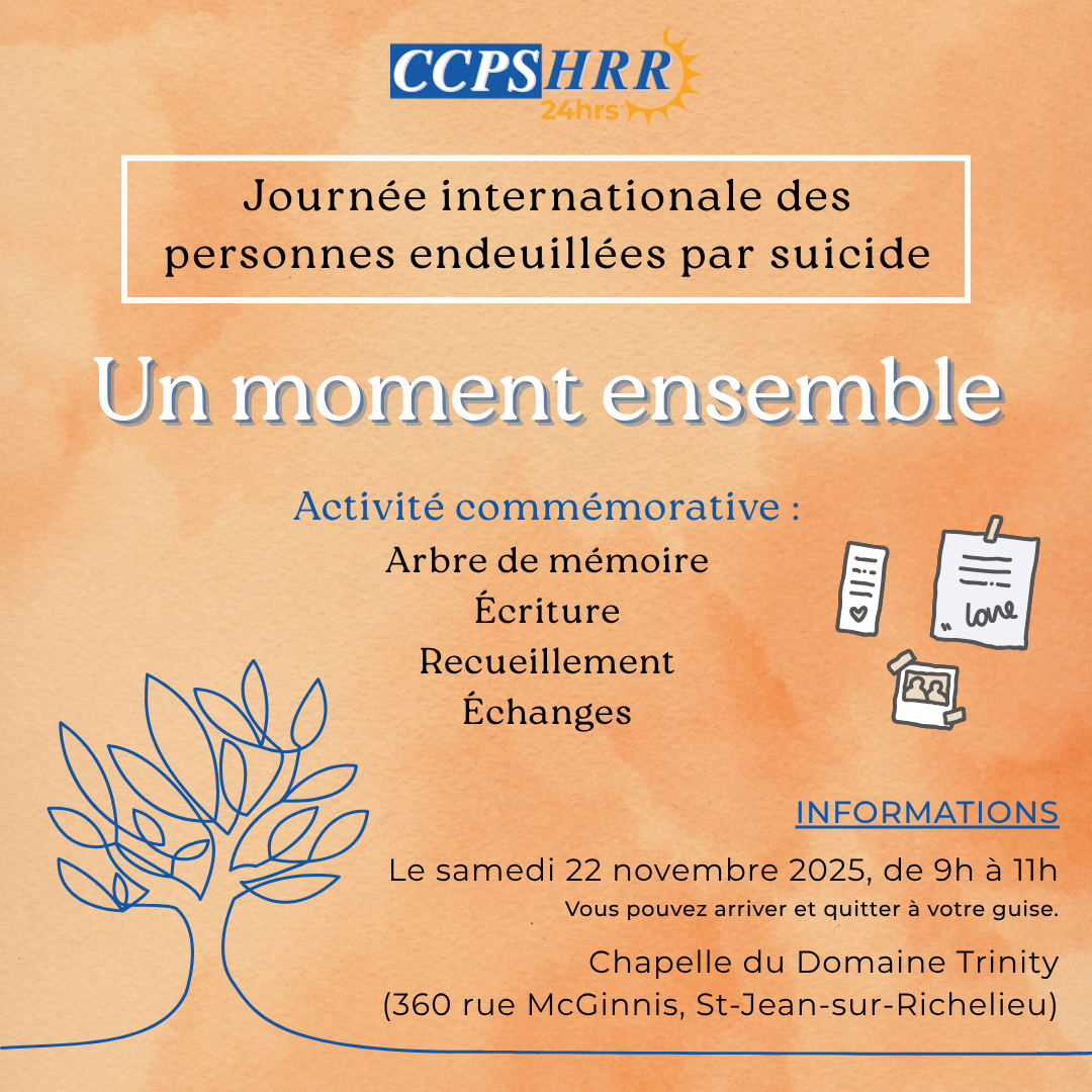 *** Merci de respecter l’invitation pour les personnes endeuillées par suicide uniquement, ainsi qu’un accompagnateur ou une accompagnatrice. ***